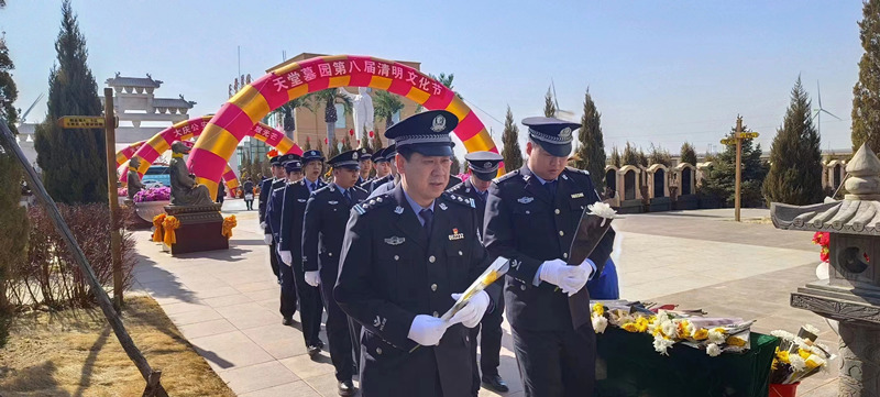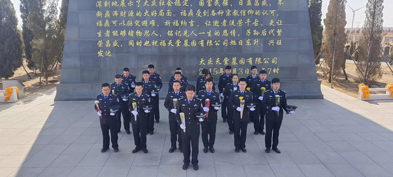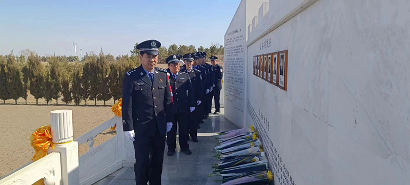 今天上午9点30分大庆市公安局东安分局民警在政委王静波带领下来到公安英烈园为逝去的英烈战友脱帽鞠躬敬礼献花。东安分局民警对英烈怀念善行令人敬佩!