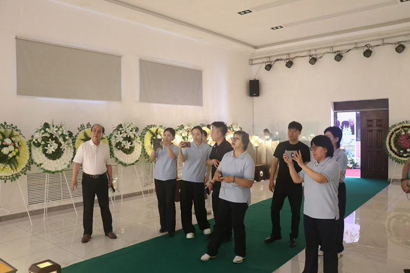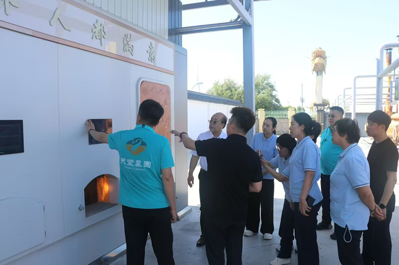 在天堂墓园,考察了骨灰礼仪告别厅,无烟焚烧区,节地生态葬。