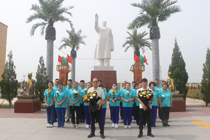 (1)手持鲜花共同拜谒毛主席汉白玉像。