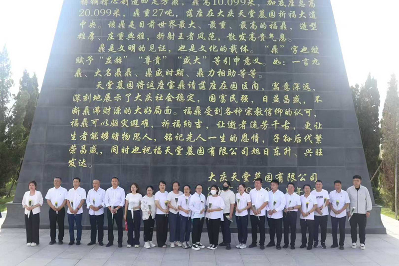 大庆东风农场纪念抗战暨反法西斯胜利80周年专题活动20余人,于9月5日上午来到天堂墓园共同研学。并集体拜谒毛主席汉白玉像,祭祀大庆公安英烈!